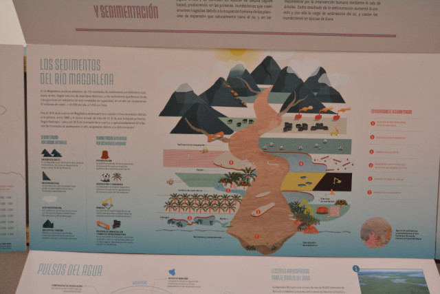 Podrá conocer en la exposición datos relacionados sobre las especies que en él habitan, sobre los alimentos que se dan y los sedimentos del río Magdalena.