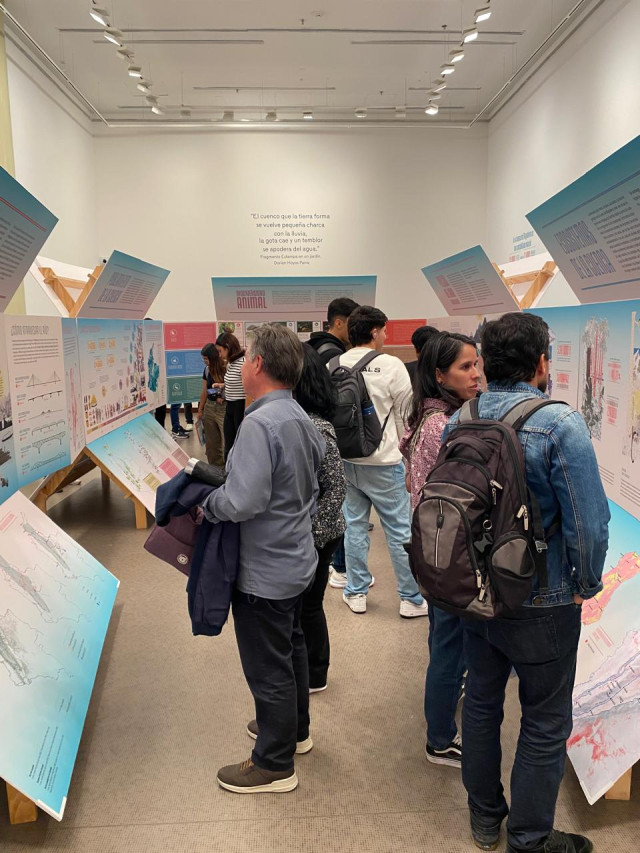 "Invitamos a preguntarnos sobre cómo históricamente la huella del ser humano ha permeado el río. También nos encontramos en la exposición dos espacios interesantes. Uno está relacionado con el poblamiento y la pregunta sobre cómo históricamente hemos poblado el territorio y quiénes lo poblamos hoy. También está el tema del transporte y las comunicaciones. Asimismo, hablamos sobre la vida económica y cómo el río, de alguna manera, a través de su recorrido y las diferentes actitudes bioclimáticas, genera unas relaciones geográficas que determinan la economía".