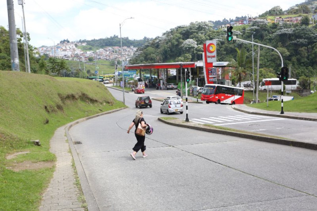 Los peatones deben cruzar por una zona verde para llegar a la cebra que los conecta hacia el barrio La Rambla.