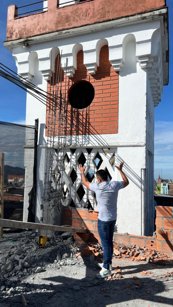 El secretario de Obras Públicas e Infraestructura, Diego Giraldo dijo que ya se ordenó detener la obra y al propietario proceder a la demolición de las partes construídas que no están contempladas en la licencia y que afectan la torre de esta capilla.