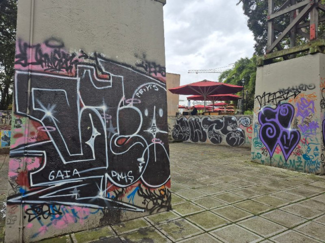 También la cantidad de grafitis que hay en la torre del cable y en otras paredes de este punto.