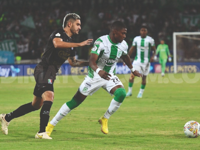 Una hora después de comenzar el encuentro, que arrancó 15 minutos después de lo planeado (8:35 p.m.) -por problemas de iluminación en el estadio Manuel Murillo Toro de Ibagué, donde se disputaba el duelo entre Deportes Tolima y América de Cali-, llegó el único tanto de la noche. Andrés Felipe Román, lateral verdolaga, acomodó el balón desde fuera del área en el poste derecho del arco defendido por Éder Chaux.