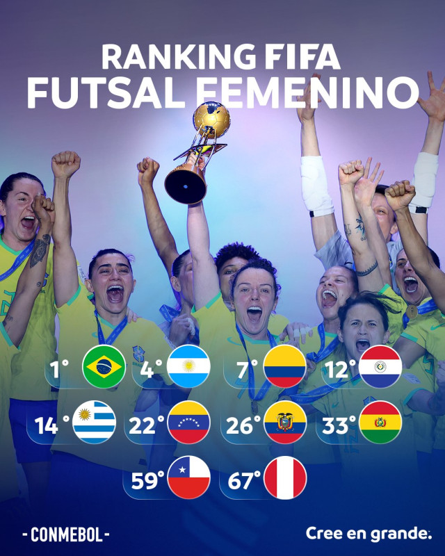La selección brasileña de fútbol sala continúa afianzada en el liderato de la clasificación de la FIFA después de conquistar la primera edición del Mundial femenino de fútbol sala en Filipinas, un hito que ha reforzado su dominio en la disciplina en una estadística que se empezó a confeccionar hace un año.