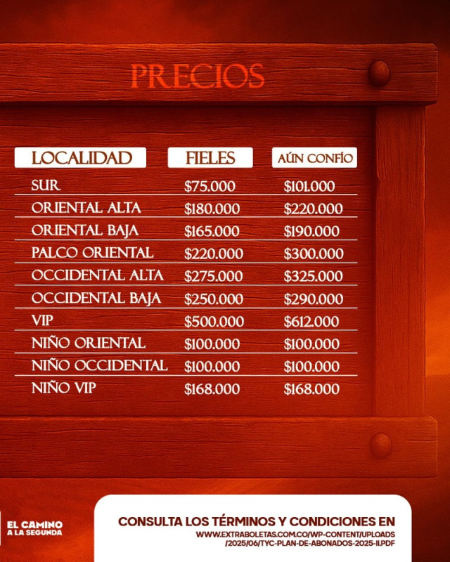 A diferencia de los planes pasados que cubrían toda la temporada de local, esta vez el plan de abonados solo cubrirá cinco partidos: Santa Fe, Atlético Nacional, Once Caldas, América de Cali y Atlético Bucaramanga.