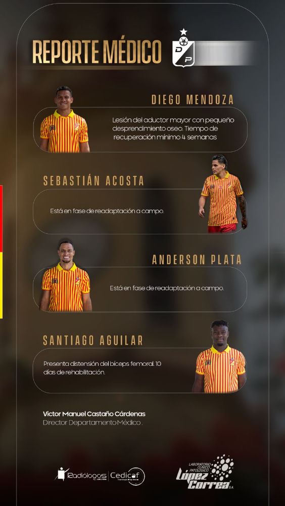 Para la sexta fecha de la Liga Betplay, el equipo pereirano no contará con cuatro jugadores para el compromiso de este sábado 14 de febrero (6:30 p.m.) ante Independiente Medellín, en el estadio Atanasio Girardot.