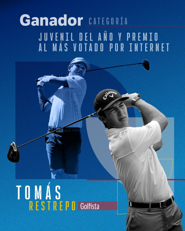 En la categoría de juvenil del año, entre tanto, el tercer lugar fue para el pesista Sebastián Olivares, el segundo lugar para la patinadora Kollin Castro y el primer lugar para el golfista caldense Tomás Restrepo, que con 17 años se coronó en la Toyota Junior Golf World Cup en Japón, el mayor logro en la historia de este deporte para Colombia.