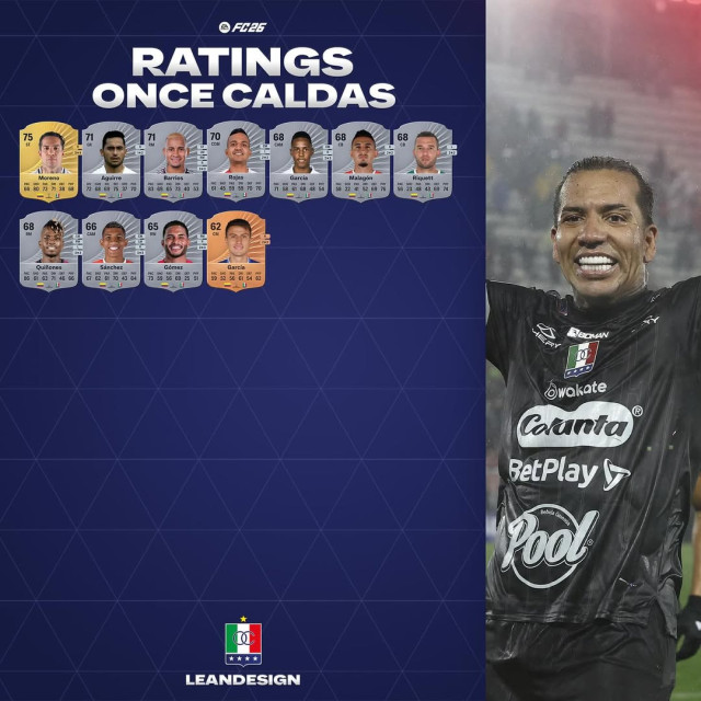 El Once Caldas repite presencia, por segundo año consecutivo, en el famoso videojuego de fútbol EA FC, anteriormente llamado FIFA. 11 jugadores integran su nómina. Vea quiénes son los más parecidos a la realidad y quiénes tienen las calificaciones más altas.