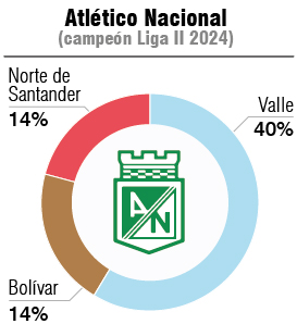 El porcentaje se incrementa al 68% con el Atlético Junior, campeón de la Liga II 2023. Los del Valle le dirigieron el 40% de sus juegos y los de Bogotá y Antioquia, de a 14%.