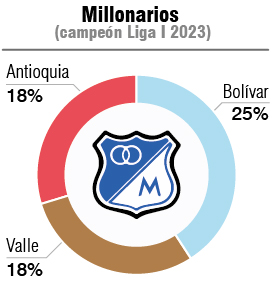 Millonarios, por ejemplo, ganó la Liga I del 2023, y el 61% de sus juegos (25) fueron juzgados por jueces vallecaucanos y bolivarenses.