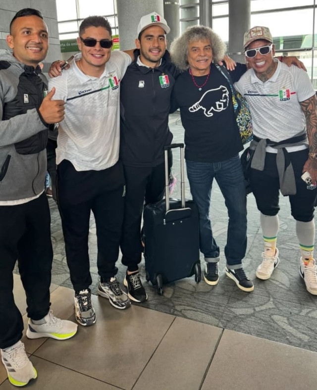 Fotos | Instagram @pibevalderramap | LA PATRIA Carlos el Pibe Valderrama y Dayro Moreno, goelador del Once Caldas, y la foto del recuerdo en el aeropuerto El Dorado.