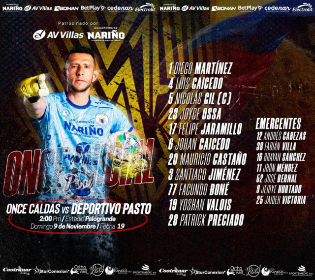 El Once Caldas recibe este domingo (9 de noviembre) al Deportivo Pasto, a las 2:00 p.m., en el estadio Palograde de Manizales, por la fecha 19 de la Liga BetPlay II 2025.