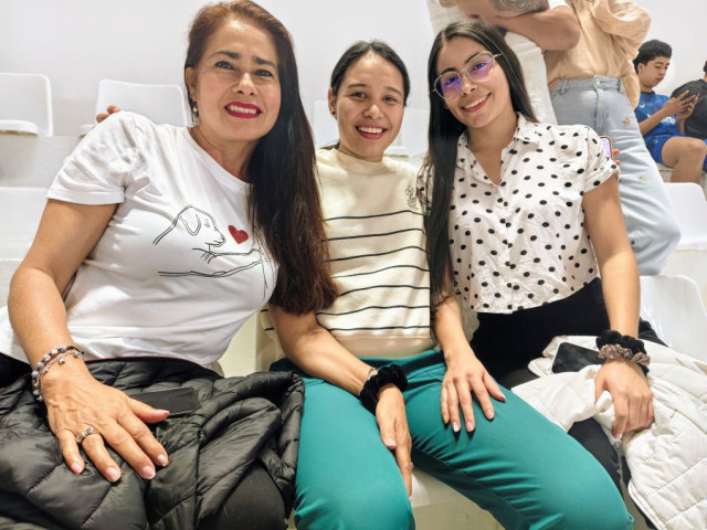 Sofía, su hija, aún no lo practica, pero lo disfruta. En más de una ocasión elevó sus manos y saltó como celebración por cada canasta anotada. "A mí me gusta el baloncesto, me apasiona, es muy chévere y me gusta ver a los jugadores y también son muy buenos. Este es el primer partido que veo y siempre apoyo a mi país y a mi ciudad que es Manizales".