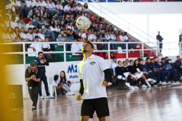 Otro de los momentos de alegría que tuvo la jornada fue la exhibición de Freestyle Soccer, a cargo de Colombia Freestyle. Sus integrantes llegaron de Pereira y Medellín y divirtieron a los estudiantes con sus piruetas con el balón.