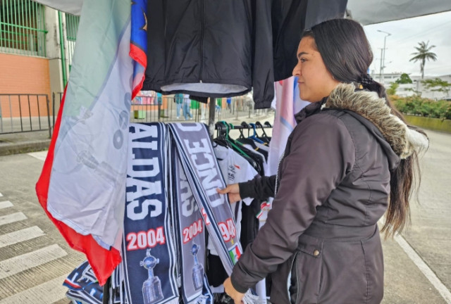 Entre los vendedores está Camila Arias quien llegó desde las 10:00 a.m. y se ubicó en el desvío de la Paralela hacia Bomberos. "Les ofrezco a los hinchas camisetas blancas y negras, bufandas de niño y adulto, conjuntos para niño. Llego temprano porque muchas personas vienen a comprar la boleta y pasan por acá", expresa la comerciante.