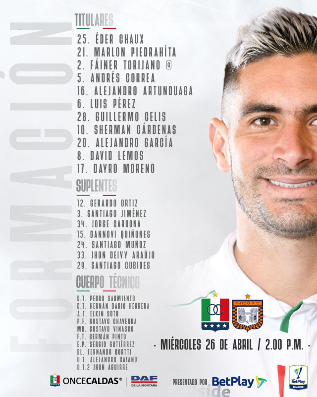Once Caldas con este empate sigue último en la Liga, llega a 12 puntos en la tabla.