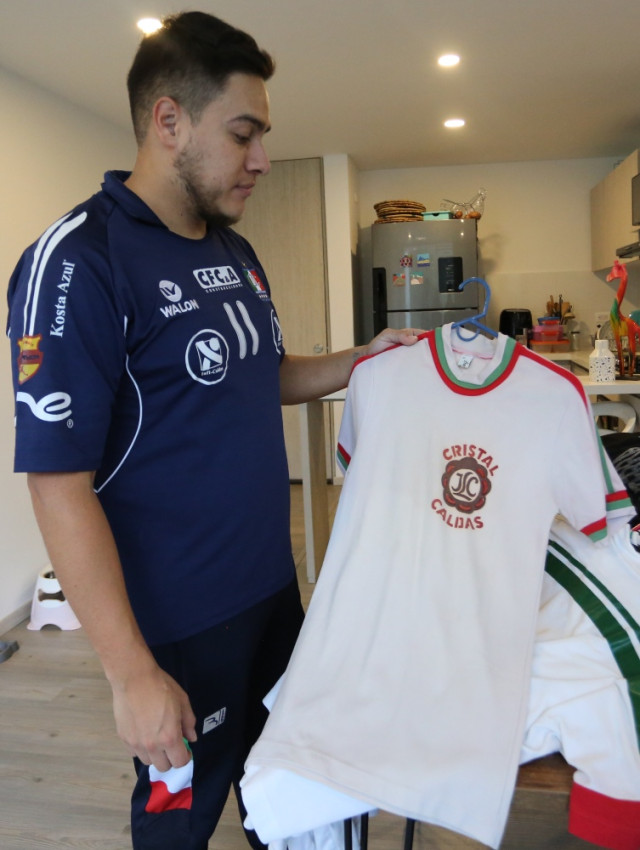 La más antigua que tiene es de 1975, del Cristal Caldas, conseguida en un intercambio con un coleccionista en Bogotá. Otra, de 1999, la recuperó de un obrero en una construcción: “Le di $40 mil y la camiseta que yo tenía puesta se la di para que él no se quedara desvestido. Me llevé la de él así como la tenía, utilizada, manchada de pintura y oliendo maluco, pero hoy todavía la guardo como un tesoro”.