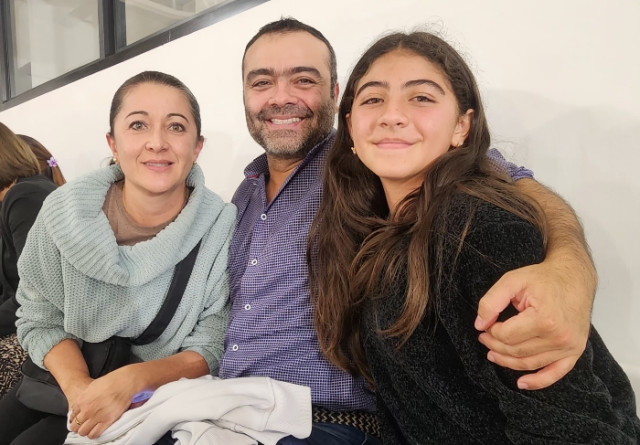 Susana Pava, con sus padres Alejandro y Diana Lorena.