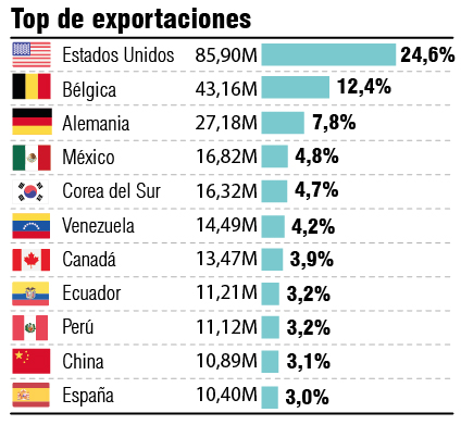 En el caso nacional, de los $28 mil 820,1 millones de dólares en el primer semestre de este año, el principal destino de exportaciones fue el país norteamericano con el 30,6%, según las recientes cifras del DANE.