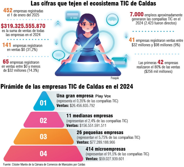 La Cámara de Comercio de Manizales por Caldas quiere potenciar las empresas TIC y expone un caso de éxito. Vea la pirámide de las compañías que venden miles de millones de pesos.