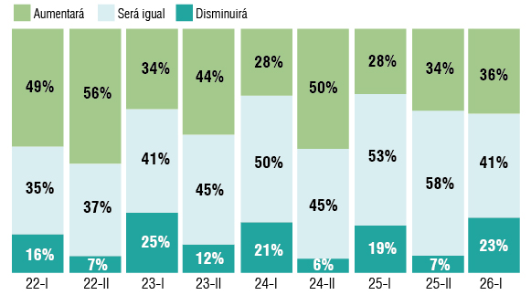 Las expectativas para el primer semestre de 2026 son las más conservadoras de los últimos tres años. El 77% espera mantener su planta de personal sin cambios, mientras que solo el 8% proyecta aumentarla. En contraste, el 15% anticipa una reducción, la cifra más alta en la serie reciente. Esto sugiere que si bien los empresarios no prevén recortes significativos, tampoco anticipan un dinamismo fuerte en generación de empleo en el primer semestre del año.