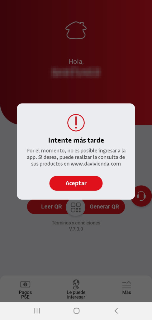 "Intente más tarde": posible solución para ingresar a la app de Davivienda