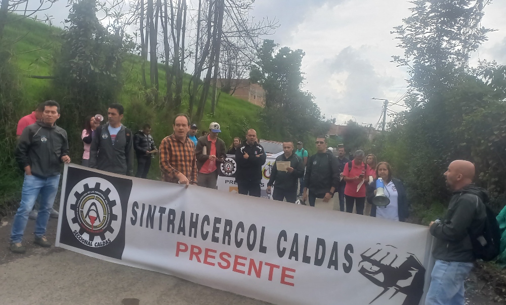 Economía Sindicato de trabajadores bloquea vía Manizales - Gallinazo (Villamaría): exigen mejores condiciones laborales 25 Feb, 2025 /sites/default/files/noticia/2025-02/Sintrahcercol-bloqueo.jpg