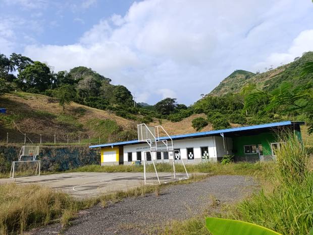 Foto I Cortesía para LA PATRIA Los alumnos estudian en una caseta comunal, luego de tener que desalojar la sede que construyó Pacífico Tres, para suplir la escuela antigua demolida para dar paso al puente de El Palo.