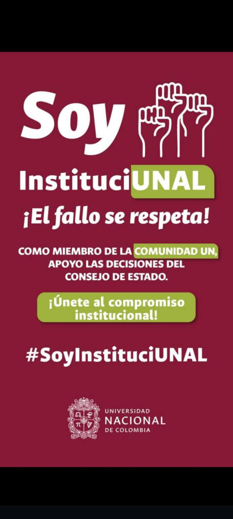 Varios profesores, en sus redes sociales, han publicado mensajes como: “Soy Institucional ¡El fallo se respeta! Como miembro de la comunidad UN apoyo las decisiones del Consejo de Estado”.