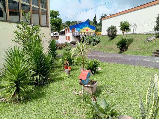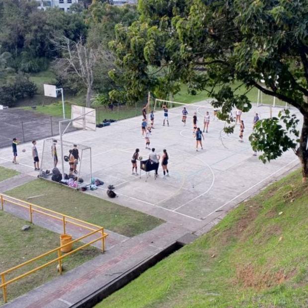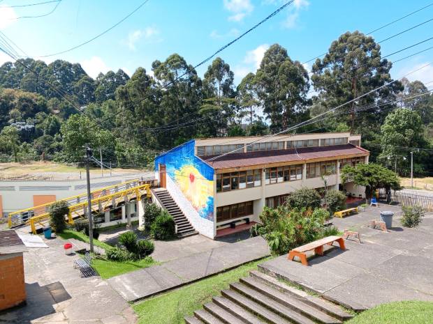 Es un colegio lleno de espacios, con aulas, zonas verdes, canchas, bosque y más.