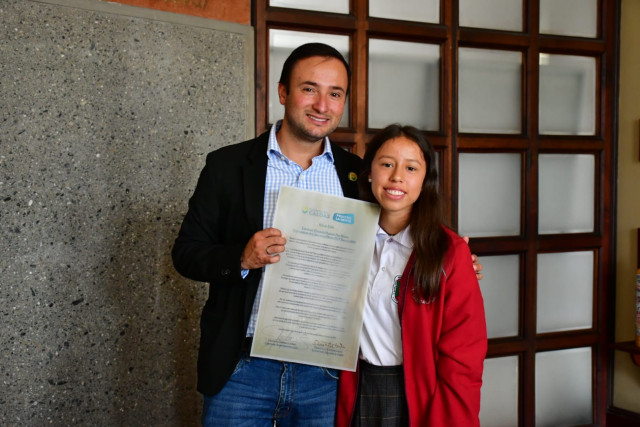 "Me siento muy feliz porque esto es un placer. Esto no se va a quedar aquí, sólo en un reconocimiento, sino que me van a recordar que soy un agente de cambio para muchísimas niñas, no sólo de mi departamento, sino de mi país. Quiero que muchas niñas se inspiren para esto y poco a poco puedan entrar a la ciencia".