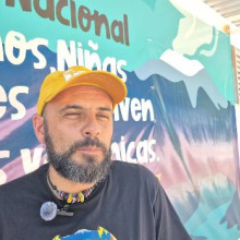 “Es un lugar de visibilización muy importante. Nuestra sede es la única que se encuentra dentro de un cráter, que mide 2,4 kilómetros en el volcán Machín. La Bienal es un escenario de visibilización muy importante para nosotros, debido a que el contexto volcánico de nuestra sede es bastante particular. Entonces, tenemos unas situaciones de riesgo que llevamos un lapso de un año comunicándoles a las entidades responsables de la situación y que no se ha procedido. De momento nuestra vereda, que se llama Coello- San Juan carece de los elementos necesarios para la gestión del riesgo, como tener radios de comunicación que estén funcionales para estar dentro de la red de emergencias del volcán Cerro Machín. También estamos haciendo la solicitud para que se revise la actual ruta de evacuación. Tenemos una ruta de evacuación marcada hacia el corregimiento de Juntas por un camino completamente inhóspito, una caminata de alrededor de seis horas, y en el imaginario de las personas no está utilizar esa ruta de evacuación por precisamente la condición en que se encuentra. Estamos solicitándoles a las entidades responsables, Unidad Nacional de Gestión del Riesgo, a la Secretaría de Ambiente y Gestión del Riesgo, que nos colabore con estas solicitudes, debido a que nosotros estamos en el cráter del volcán, somos el riesgo más inmediato, más inminente. Aprovecho el escenario para comentarles que el volcán Cerro Machín tiene un ciclo eruptivo de 800 años, el cual ya se ha cumplido. Esto intensifica mucho más la vulneración como tal de los derechos de los niños, de estar protegidos y como tal en riesgo su integridad física y su vida”.
