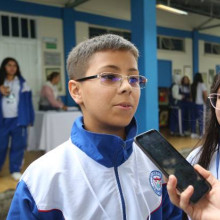 Juan Andrés Jaimes Henao, del grado 6-1, con su historieta, basada en su personaje Boster Sound.
