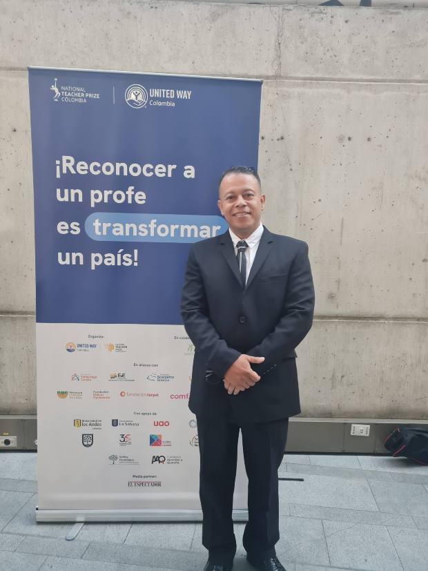 Su capacidad innovadora lo acaban de llevar a un logro de gran reconocomiento en Colombia. Obtuvo el tercer lugar en la categoría Maestro que Transforma del National Teacher Prize Colombia 2026.