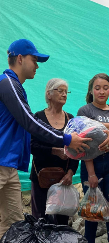 Añade: “De esta forma, colaboradores, estudiantes, Equipo de Bienestar Universitario y líderes sociales del barrio Galán se unen para brindar apoyo a las familias víctimas de los incendios”.