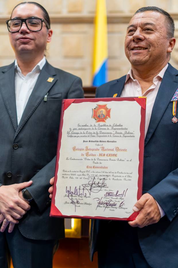 La distinción la otorgó el primer vicepresidente de la Cámara, el caldense Juan Sebastian Gómez, como reconocimiento a la labor formativa y al impacto que ha generado en la vida de cerca de tres mil de jóvenes del oriente caldense.