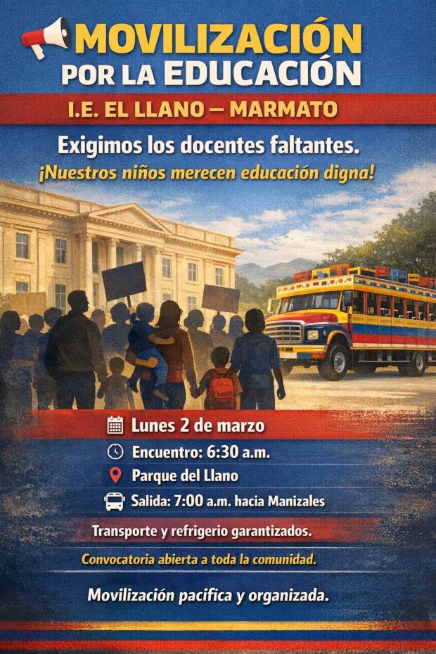 “Ante a la movilización anunciada por la Institución Educativa El Llano de Marmato hacia Manizales, la Secretaría de Educación departamental informa a la comunidad educativa y a la opinión pública que tras la comunicación remitida por la Rectoría del plantel, en la cual se indicaba un presunto faltante de seis (6) docentes, el equipo técnico activó de inmediato la revisión correspondiente, con base en la información oficial registrada en el Sistema Integrado de Matrícula (SIMAT) y los lineamientos normativos vigentes.
