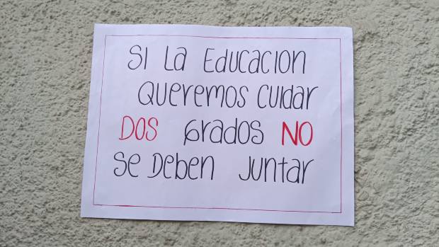 Por eso, madres y padres comenzaron lo que denominan una protesta pacífica. “... expresando nuestra inconformidad y negativa frente a la decisión adoptada por la Secretaría de Educación de Caldas de unificar los dos salones de segundo grado, bajo el argumento de procesos de racionalización o ajuste de planta docente”. Lea más adelante la respuesta de la Secretaría departamental.