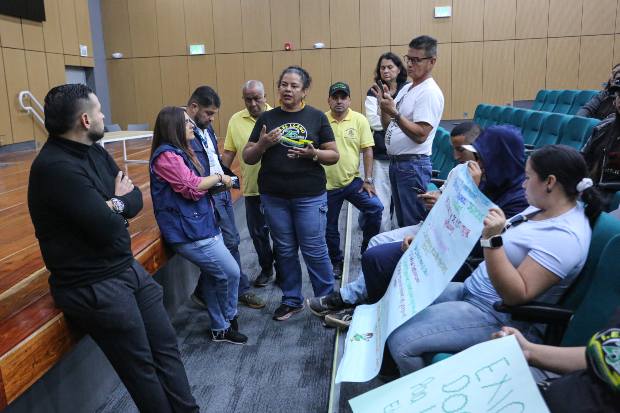 Padres de familia del colegio El Llano, de Marmato, llegaron ayer a la Secretaría de Educación de Caldas, en el Parque Tecnológico de Villamaría, para seguir con su exigencia de más docentes. El secretario, Luis Herney Vargas, escuchó a la líder Dora Vásquez y demás asistentes.