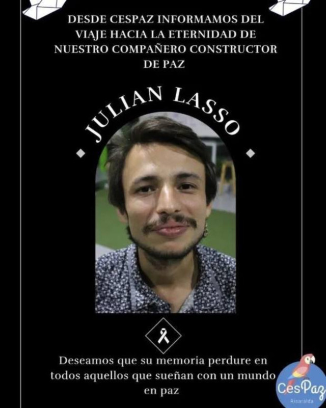 El programa de Sociología de la Universidad de Caldas complementó los mesajaes de duelo con jque Julián Esteban Lasso, egresado de esa carrera, en ejercicio de su profesión se destacó por su sensibilidad y su compromiso con los proceso de formación de paz.