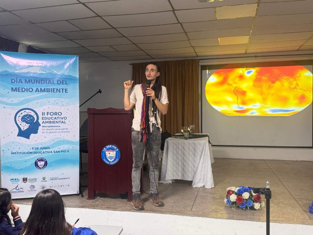Dos estudiantes de la Institución Educativa Pío X, de Manizales, asistieron ayer al II Foro Educativo Ambiental: Microplásticos, un problema emergente en la gestión ambiental, organizado por el colegio San Pío X, del barrio La Enea de Manizales.