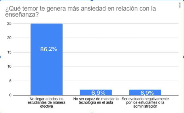 Las respuestas muestran que muchos maestros sienten ansiedad ante los retos que plantean las nuevas generaciones. Señalan inquietudes frente al manejo de conflictos, la adaptación a transformaciones sociales y el acompañamiento familiar en los procesos formativos.