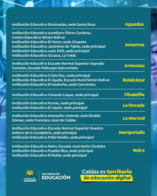 33 sedes educativas de 18 municipios de Caldas serán beneficiados con la convocatoria Tecnologías para Aprender.