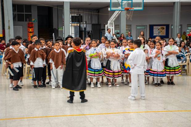 Los estudiantes dramatizaron lo sucedido con la independencia de Colombia, primero con lo del 20 de julio de 1810 y luego con lo de la Batalla de Boyacá en 1817.