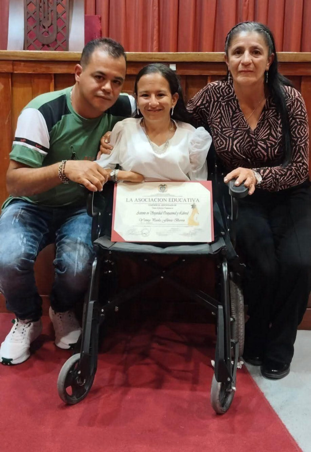 La joven no se detiene, y continuó sus estudios durante dos años y medio en la Asociación Educativa Manizales donde logró graduarse al lado de 20 compañeras como Asistente en Seguridad Ocupacional y Laboral.