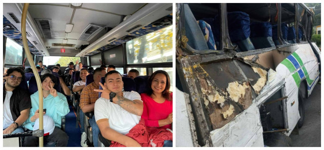 Una de las últimas imágenes del grupo de estudiantes, felices antes de iniciar su viaje de estudios. Luego el estado del vehículo que la parecer no contaba con cinturones de seguridad para pasajeros.