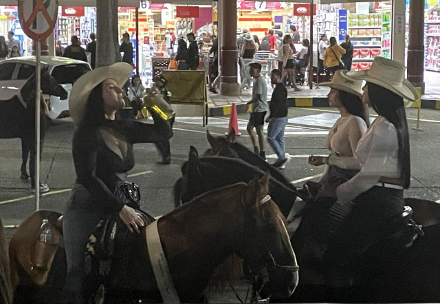Constantemente los caballos se detenían para que quienes los montaban se detuvieran a beber, mientras música sonaba a alto volumen.