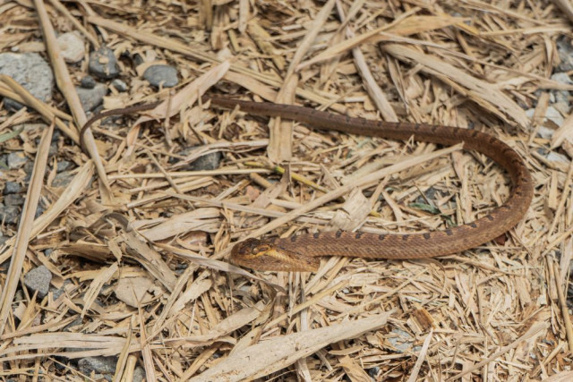 Mientras la comunidad realizaba el plantón alrededor de la construcción, vieron una serpiente que se deslizaba entre las ramas y las hojas que caían de los bambús.