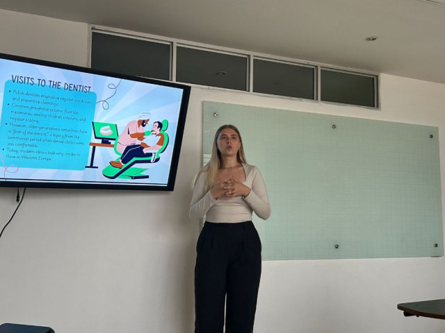 Viajó a España por un programa de intercambio, Erasmus, antes de graduarse y el choque cultural le encantó. En Polonia su contacto con el idioma era a través de Violeta (serie juvenil argentina) y la música de Álvaro Soler.