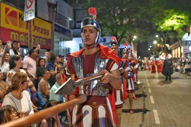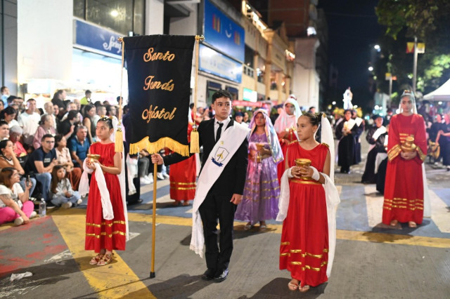 En las calles céntricas de la ciudad se reunieron miles de personas para presenciar el desfile nocturno de las representaciones masculinas de entidades públicas y privadas, y ciudadanos que acompañaron cada uno de los pasos, llevando en sus hombros las imágenes religiosas al compás de la banda músico marcial de la Policía Nacional, del colegio militar Rafael Reyes y de la Secretaría de Cultura de Pereira.