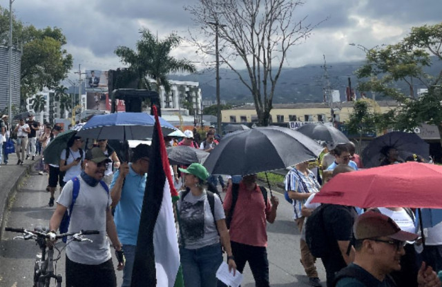 El Ser (Sindicato de Educadores de Risaralda) y la Cut (Central Unitaria de Trabajadores) lideran la marcha, donde además de las peticiones por la salud, hacen arengas sobre la reforma a la salud que sigue estancada y la crisis diplomática entre Estados Unidos y Colombia.